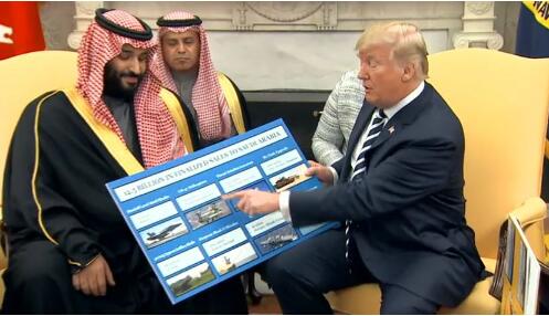 2018年3月20日,沙特王储访美,与特朗普谈投资 。《华盛顿邮报》视频截图