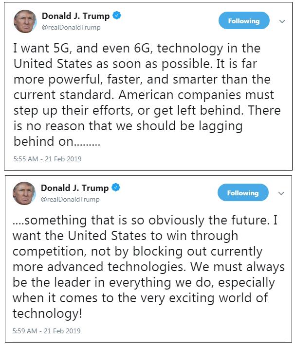 “我想要5G,甚至6G能尽快进入美国市场…在这个毫无疑问代表着未来的领域,我们没有任何理由落后于人。”