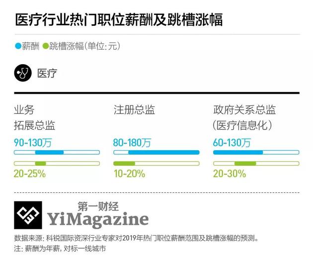 医疗健康向来是一个受政策影响较大的行业,过去一年,医疗行业经历了商业模式规范化,这对医药代表的要求提高了。政策加快了进口药的上市速度,鼓励新药研发与医疗信息化,加上消费者对健康的需求越来越强烈,因此医疗健康行业薪酬涨幅在2018年增长较明显,这个趋势会在2019年持续。