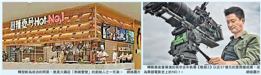 首先說說那些轉戰幕後的明星們。「唱而優則演,演而優則導」,這句話近年被越來越多的明星跨界所認證,典型的代表有很多,包括演員周星馳,其轉戰幕後所導演的賀歲片都是新春劇院的大熱影片;還有演員吳京去年轉型當導演後一部《戰狼2》以近57億元(人民幣,下同)的票房總成績,成為華語電影史上的NO.1等等。