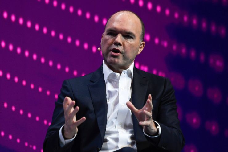 图:2019年2月25日,沃达丰首席执行官尼克·里德(Nick Read)在巴塞罗那举行的世界移动通信大会(MWC)上发言
