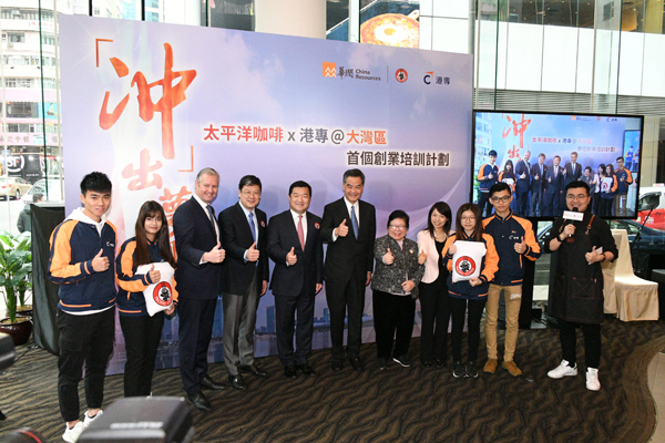 華潤旗下的太平洋咖啡和港專學院合作,開展「沖出夢想——太平洋咖啡╳港專@大灣區首個創業培訓計劃」,令有志在大灣區發展的香港青年,熟悉大灣區的內地城市,裝備必要的技能和知識,並為他們提供支援措施,協助有志青年首先通過咖啡行業為人生築夢和圓夢。計劃於昨日舉行簽署和啟動儀式,邀請了全國政協副主席梁振英擔任主禮嘉賓。