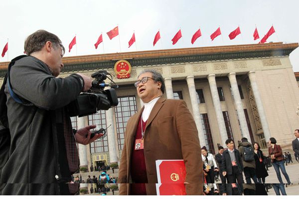 2017年,王敏剛攝於第十二屆全國人大五次會議上。
