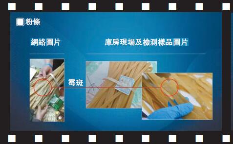 「經專家和檢測人員鑒定,粉條表面有肉眼可見的霉斑,檢驗結果為不合格。」賀欣介紹,但肉夾饃表面的白色部分為餅皮和冰晶,冰凍魷魚上的附着物為玉米、豌豆、火腿腸,雞腿表面的黃色粉末實際上是薑黃粉。粉條供貨日期為2019年3月1日,共5件150斤,已使用105斤,剩餘45斤。目前,剩餘粉條已經全部封存,並已立案調查。