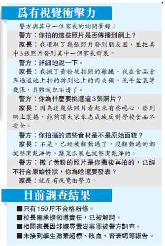 經查發現,網上流傳的大部分發霉食材照片均為不實,目前有3名家長涉「尋釁滋事罪」被警方調查。