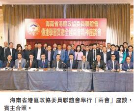 【香港商報网訊】記者呂明霞報道:海南省港區政協委員聯誼會日前假港麗酒店舉行「傳達學習貫徹全國『兩會』精神座談會」,前中聯辦協調部部長、全國政協委員沈沖,中聯辦協調部部長朱文,全國人大常委譚耀宗、葉國謙,全國政協委員曾偉雄、施榮懷出席解讀「兩會」精神。沈沖從個人角度用「惠民生、促開放、謀發展、增信心」12個字解讀今年「兩會」。海南省政協委員,海南各市縣政協委員、資深委員,以及部分瓊屬社團領袖青年骨幹逾110人出席。