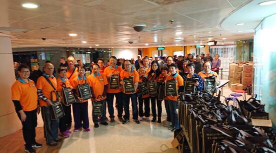 由負責人南天佛緣福萬家籌備委員會副會長、香港普門基金會主席李月民區議員(左八)帶領義工團隊於嘉湖山莊派發點準備派發福袋。