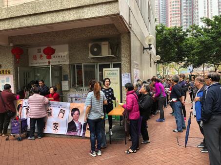 於天水圍天悦邨派發點派發福袋於區內長者。
