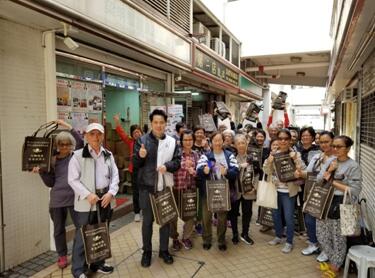 義工於在元朗市中心派福袋予各長者,各人取袋後均面露喜悅笑容。
