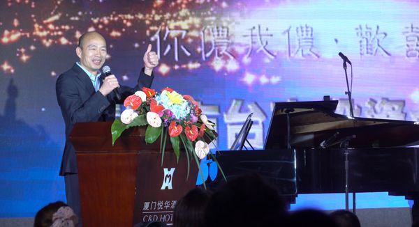 韩国瑜参加厦门台商协会为高雄参访团举行的家宴。