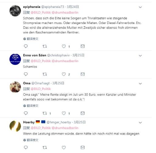 2016年以来,受国内物价上涨等因素影响,联邦总理和政府官员的工资每年都会有所调整。对于4月1日起政府官员集体“涨工资”一事,不少德国网友还是表示支持的。但即便身居高位如默克尔,这样的薪资水平也算不上特别“高薪”。德国 “Gehalt.de”网站就高薪职业进行的调查结果显示,德国很多企业员工的薪资和默克尔相近,而这些人甚至并未进入企业领导层。在大型咨询公司,领导层员工的平均年收入高于30万欧元。据统计,每4个企业管理顾问中,就有1个年薪超过50万欧元,薪资明显高于默克尔。