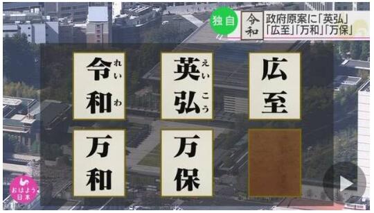 昨天(1日),日本政府宣布5月1日起使用的新年号为“令和”。日媒披露,落选的年号包括“英弘”、“广至”、“万和”、“万保”。