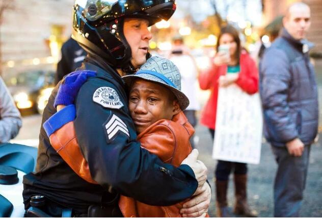 而也就是这名叫做Devonte的15岁黑人男孩,在2014年美国俄勒冈州波特兰的一次示威中拥抱了一名白人警官的照片还引起了国际社会的广泛关注。当时媒体还报道了他所在的家庭的幸福景象。