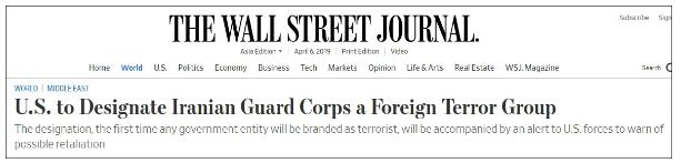 特朗普在白宫发布的一份声明中说,伊斯兰革命卫队是伊朗政府指挥和实施其全球恐怖主义行动的主要手段。此举将加大美国对伊朗“极限施压”的范围和力度。