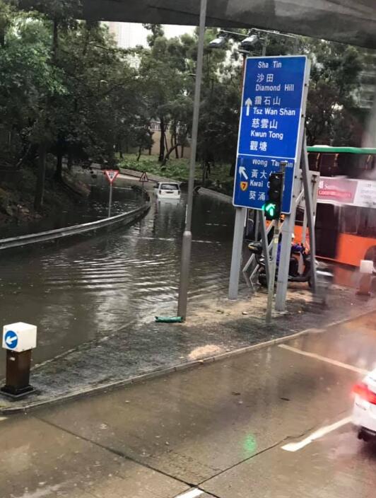 新蒲崗彩虹道昨於黃雨下水浸,有私家車駛過時死火拋錨。 網上圖片
