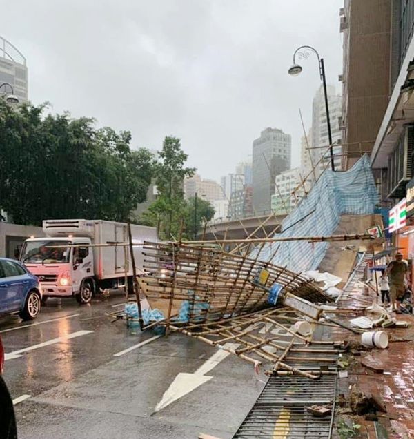 港島銅鑼灣禮頓道有整幅棚架倒塌。