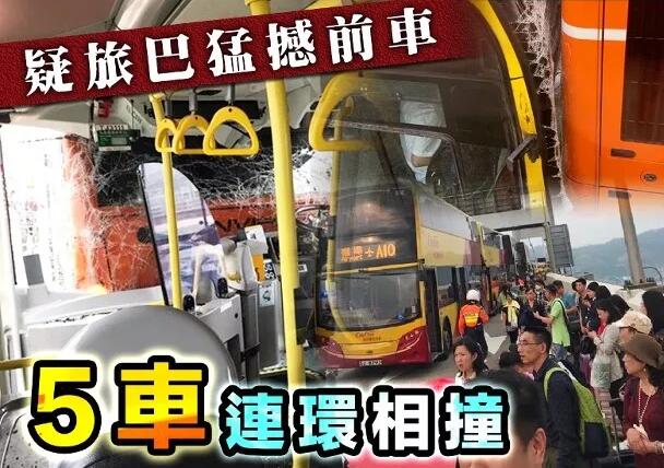 据悉,事故时因为先行的巴士因应交通情况减慢车速,尾随的3辆巴士也及时煞掣,但驶在最后的单层巴士却怀疑收掣不及,猛撼前方巴士,巴士被撞后衝前再分别撞向前车,酿成5车串烧意外。