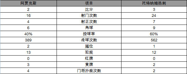 全场比赛,热刺24次攻门7次射正打入3球,阿贾克斯16次攻门4次射正收获2球。热刺的控球率达到60%,阿贾克斯则为40%。