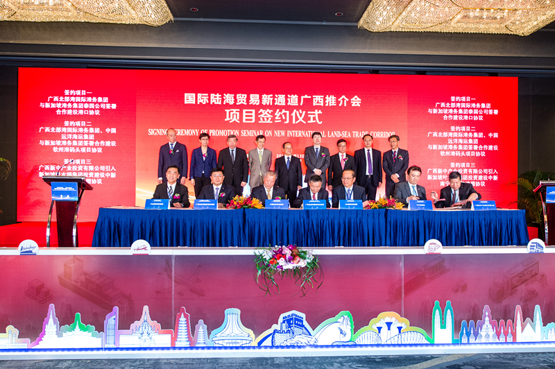 廣西壯族自治區黨委書記鹿心社在新加坡推介會上表示,當前,中新兩國友好合作的一大新亮點,就是共同推進陸海新通道建設。希望新加坡等東盟國家各界朋友積極參與共建陸海新通道,共用合作大商機。