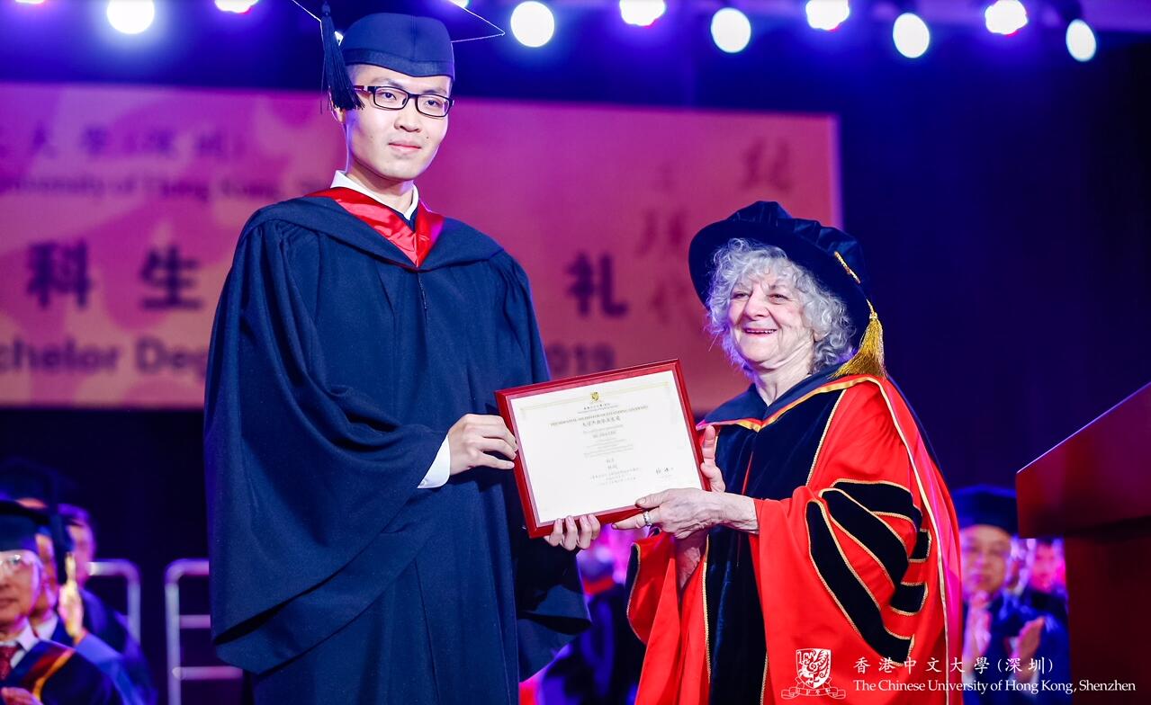 2009年诺贝尔化学奖获得者阿达·约纳特教授、香港中文大学(深圳)校长徐扬生教授及大学理事会成员、大学主管人员和教授以及社会各界嘉宾一同出席了毕业典礼。徐扬生致辞称,这是一次具有特别意义的毕业典礼,因为这是理工学院首届本科生的毕业典礼,是大学第二届本科生的毕业典礼。徐扬生说,今年学校成立了第四个学院“生命与健康科学学院”,“医学院”和“音乐学院”的筹备工作也已逐渐展开,大学正朝着创建一所世界一流的研究型大学的目标在努力迈进。最后,徐扬生向学生们致谢,“是这所大学把你们推向了世界,也是你们把这所大学推向了世界!”