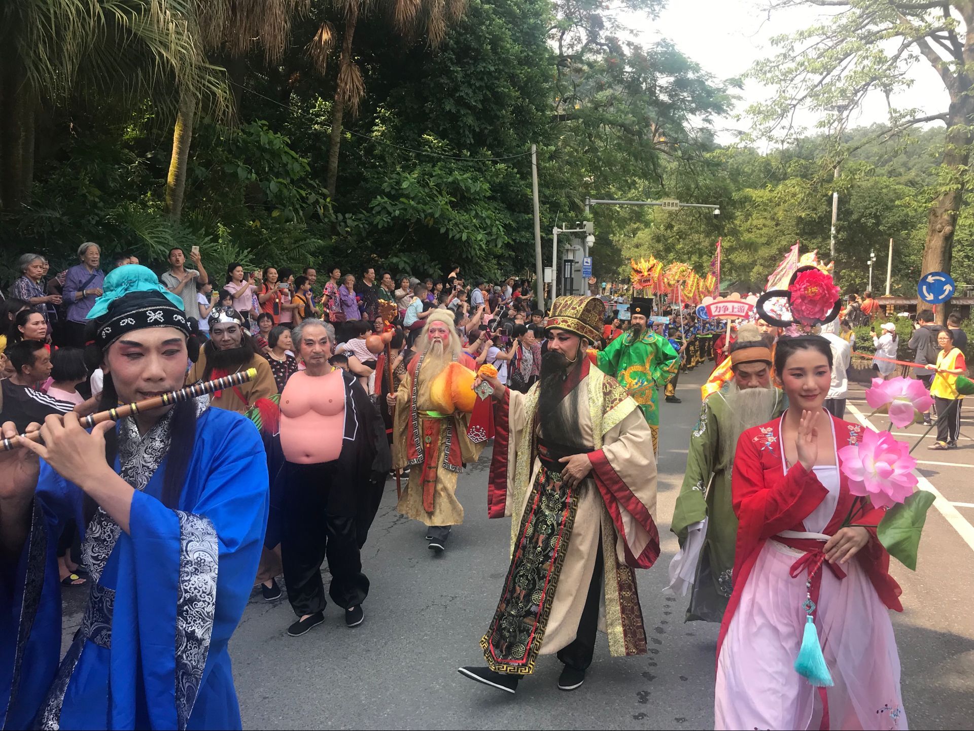 據了解,2009年「西樵大仙誕廟會」被列入佛山市非物質文化遺產保護名錄,2013年被列入廣東省非物質文化遺產保護名錄。每年的西樵山「大仙誕」文化節,「重頭戲」必然是巡遊環節。今年大仙誕巡遊共設六大主題方陣,包括「眾仙賀誕」、「力爭上遊」、「灣區文脈」、「產業弄潮」、「古鎮東風」、「魅力華章」。18日上午9時,在白雲洞奎光樓前,隨着南獅出場,有十仙巡遊、功夫獅舞、太極粵劇、魅力彩車等元素共百餘人組成巡遊內容,從奎光樓前出發,經雲門牌坊(嶺南文化苑),到江浦西路,最後到天鎮峰公園結束。整個巡遊過程市民和遊客熱情高漲,許多遊客紛紛拿起手機,留下文化盛宴的影像。