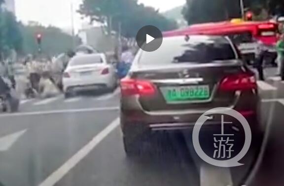 据视频显示,事发地位于广州天河中信广场附近一十字路口,当时是绿灯,不少行人正在穿行斑马线。涉事的粤牌白色奔驰小轿车突然启动,然后冲向斑马线,撞倒多名路人,现场一片慌乱。