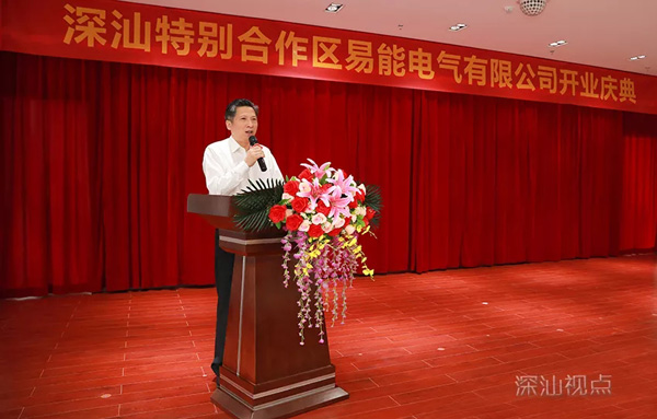 【香港商報網訊】記者余麗齡 通訊員劉淑芳 張貴報道:5月24日,易能電氣高新產業園舉行開業慶典,標誌着該項目正式投產,這是深圳市深汕特別合作區(簡稱「深汕合作區」)正式揭牌成為深圳第「10+1」區以後的首個投產項目。深圳市深汕特別合作區黨工委書記產耀東,深汕特別合作區黨工委委員、管委會副主任蔡轉彎出席活動。