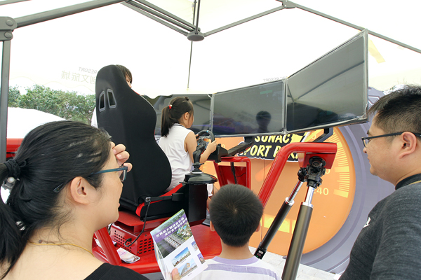 記者在活動現場看到,體驗區的人氣最高,卡丁車歡樂屋,被幾個支撐氣閥撐在半空中的駕駛艙,隨著駕駛員時而加速時而轉彎的操作而顛簸搖動,三塊超大螢幕上顯示的即時賽道也在不斷變化,讓人感謝瞬間來到F1比賽現場一般。