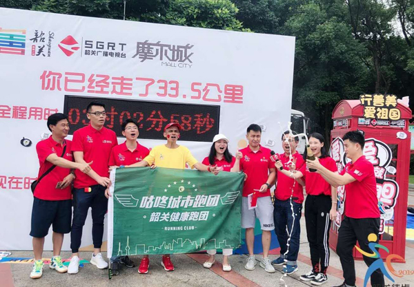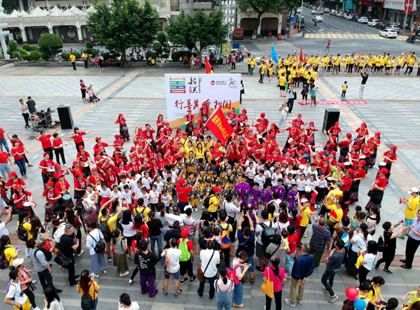 上午8時,一套運動熱身操拉開了活動的序幕。緊接着推出了一場主題為「我和我的祖國」的快閃活動,著名歌手唐彪、李素華,道德模範、身邊好人、勞動模範、韶關各行各業代表、韶關學院師生、徒步選手現場齊聲合唱《我和我的祖國》,把現場氣氛推上了高潮。