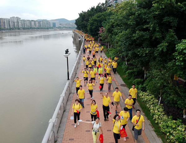 徒步路線穿越在韶關三江六岸的山水城市特色中,全程33.5公里,全程有慢行系統、城市綠道、親水平台……每一道景觀都充分展示了韶關得天獨厚的山水環境與宜居宜業宜游的城市風貌。活動期間還舉行了公益捐步、微視頻創作大賽、徒步攝影大賽等活動,還有合唱、粵劇、朗誦、瑤族舞、竹竿舞、歡樂鼓、街舞、爵士舞等群眾性街頭廣場互動獻演。沿途不斷有市民加入到徒步隊伍中,一路歡歌笑語,共享韶城美景,同沐文明新風。