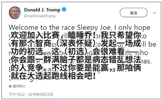 另外,特朗普早在拜登宣布参选时就曾将其称为“瞌睡乔”,并嘲讽称“我希望你有那个智商(深表怀疑)来发起一场成功的初选。”
