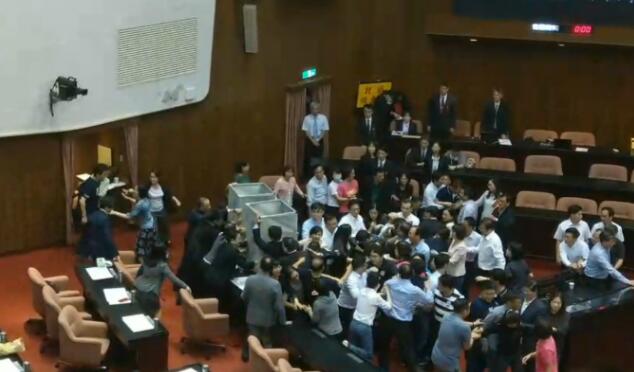 海外网5月28日电台立法机构又打起来了,因一场投票,蓝绿“立委”上演肉搏大战,场面一片混乱。