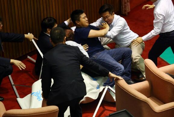 大约上午9时26分,“立委”爆发推挤冲突。民进党团以人数优势,将主席台前的国民党“立委”向右推挤。台立法机构负责人苏嘉全则在9时50分进入议场,并于10时宣布开始投票,但台下“立委”已然扭打成一片。