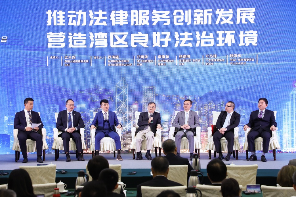 广州市中级人民法院副院长姜耀庭在《强化审判职能,推动制度创新,为粤港澳大湾区建设营造良好法治环境》演讲中介绍了广州中院在便利涉港澳当事人、推广新型诉讼服务举措等方面作出的大量工作,并于今年初启动全国首个5G智慧法院建设,为营造粤港澳大湾区良好法治环境进行了积极探索。