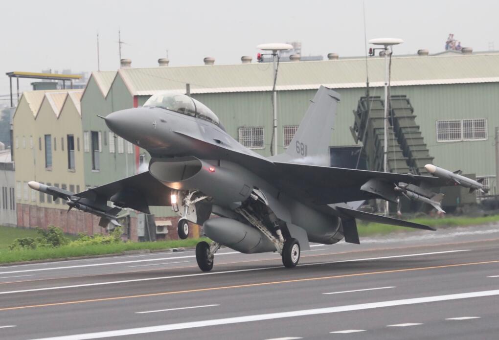 台軍最新型F-16V戰機參與演習。中央社
