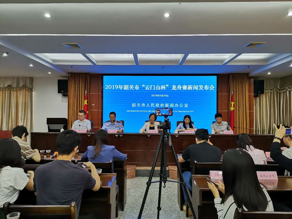 【香港商報網訊】記者李芳 通訊員沈明禮 蔡仁銀報道 :5月29日上午,韶關市召開新聞發佈會,介紹2019年該市「雲門山杯」龍舟賽籌備情況。本屆龍舟賽將於6月1日上午在該市區湞江河面北江橋至曲江橋500米水域舉行,屆時來自全市各縣(市、區)的16支龍舟代表隊將共聚韶城展開競速。