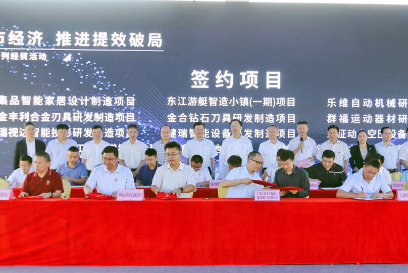 簽約項目共有11個,涵蓋教育和人才建設、服務業、工業等領域,涉及投資總額63.63億元,它們分別為:廣東工業大學校地共建實踐育人基地項目、東江遊艇智造小鎮(一期)項目、群福運動器材研發製造項目、宏征動力空壓設備研發製造項目、東方時代金屬建材設計製造項目、樂維自動機械研發製造項目、金豐利合金刃具研發製造項目、金合鑽石刀具研發製造項目、瑞視達智能投影研發製造項目、健瑞智能設備研發製造項目、集品智能家居設計製造項目。