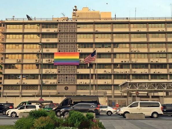 由于特朗普政府的要求,美国驻各地大使馆都不能于同志骄傲月(Pride Month),在美国国旗边上挂六色彩虹旗。