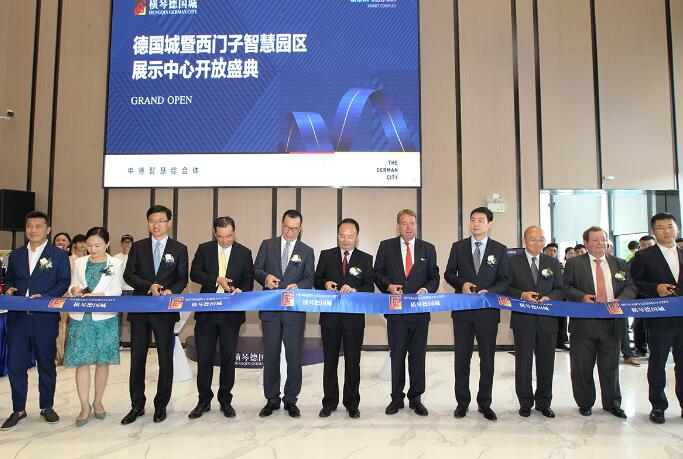 來賓為橫琴德國城西門子智慧園區示範展廳開放剪綵。
