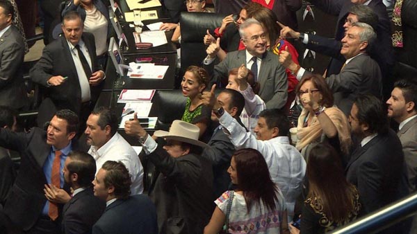 通過USCMA後,墨西哥議員興奮祝賀。網絡圖片