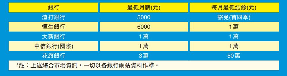對於薪酬低過2萬元或以下的打工仔,那就適宜揀個開戶門檻較低的出糧戶口。月薪要求在2萬元或以下的出糧戶口當中,渣打的要求最低,可低至5000元。成功開立「渣打紅利出糧戶口」並同時開立綜合理財服務,其「渣打紅利出糧戶口」可享高達1.68%港元推廣儲蓄年利率,且享有首4季服務費豁免優惠。至於恒生(011)亦設有最低月薪6000元的出糧戶口,其每月最低結餘為1萬元。推廣期至9月30日。