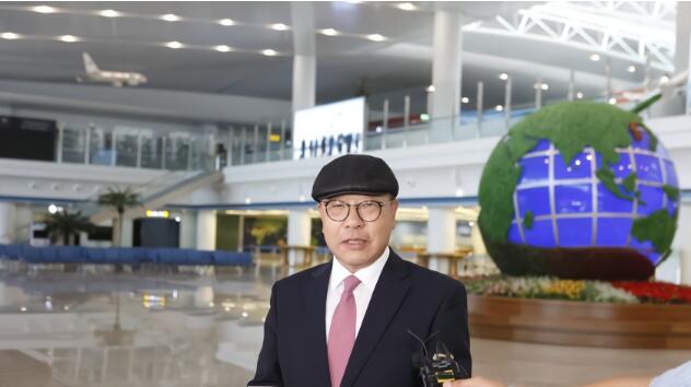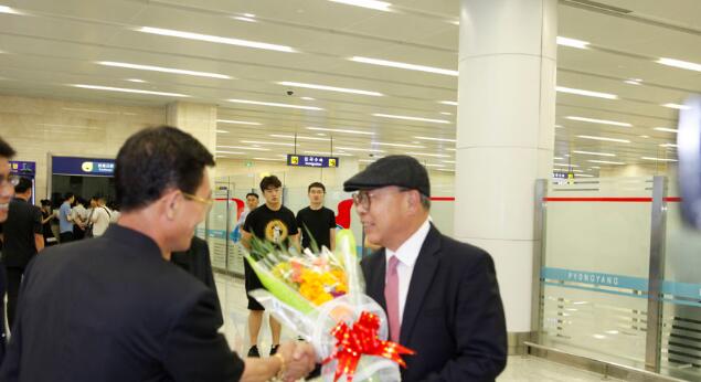 7月6日,在平壤顺安机场,崔仁国发表抵朝感言。 本文图自“由我们民族自己”