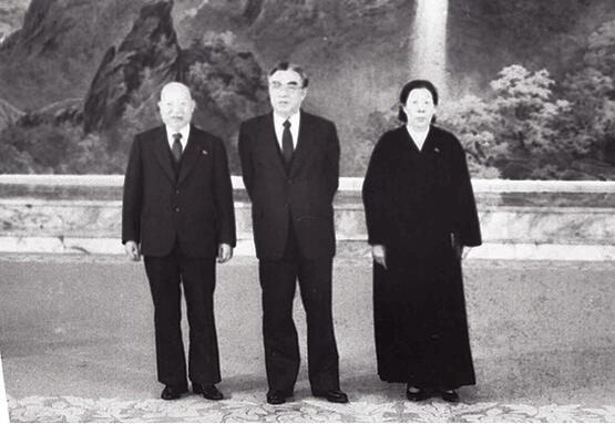 崔德新(左侧)及夫人柳美英(右侧)生前与金日成的合影。朝鲜中央日报