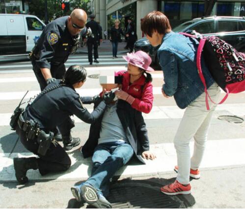 据美国《世界日报》报道,三名来自中国广东的游客在美国旧金山市中心遇袭,疑遭砍伤并被殴打,血洒现场。大批警员随后到场,拘捕一名非裔嫌犯。伤重的一名男性游客随后被送往旧金山总医院治疗。