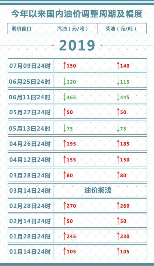 2019年國內成品油調價已呈現“九漲三跌一擱淺”的格局。截至本次調價,汽油價格累計每噸上調640元,柴油價格累計每噸上調615元。