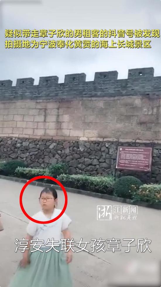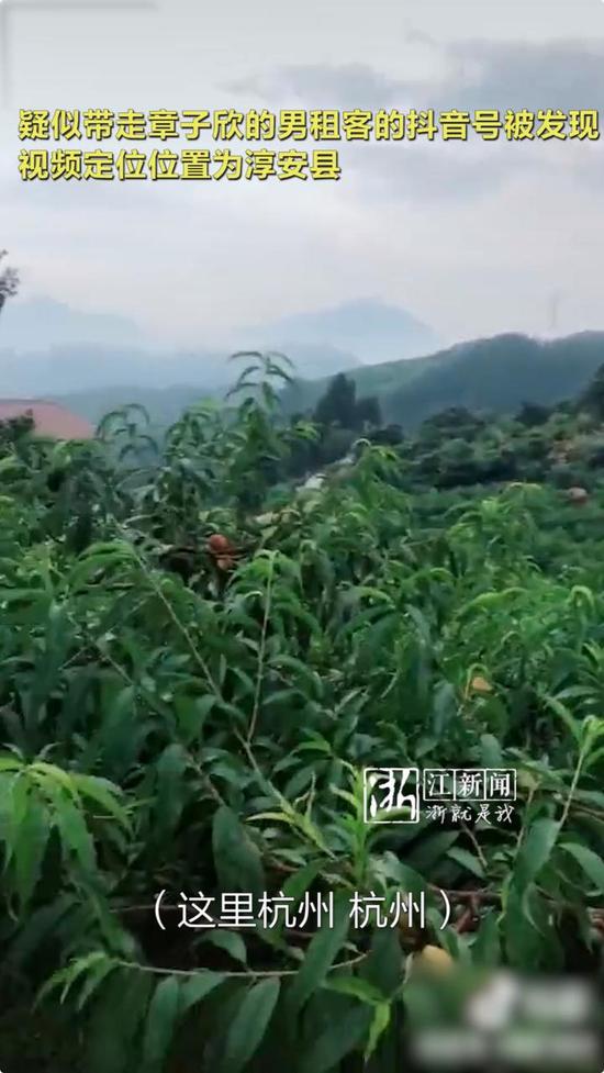 账号上有两段视频,一段记录着两名租客带着章子欣在奉化黄贤公园游玩,一段记录着疑似小女孩淳安老家的桃林。同时,记者还找到了一段该抖音账号关注的另外一个抖音账号上发布的疑似两人旅游视频。