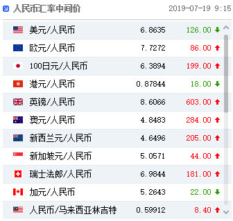 7月19日,人民币兑美元中间价较上日调升126点,至6.8635,中间价升值至2019年7月2日以来最高,升幅创2019年7月11日以来最大。同时,中国央行今日开展1000亿元逆回购操作,因今日无逆回购到期,当日实现净投放1000亿元。