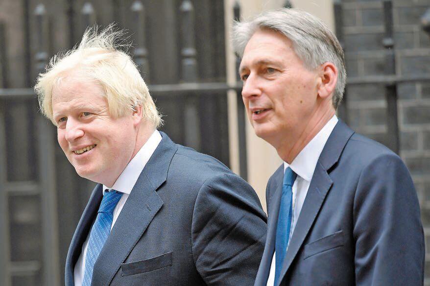約翰遜(左)預料將成為英國下一任首相。夏文達(右)強調,他無法輔佐一位樂於讓英國硬脫歐的領導人。路透社