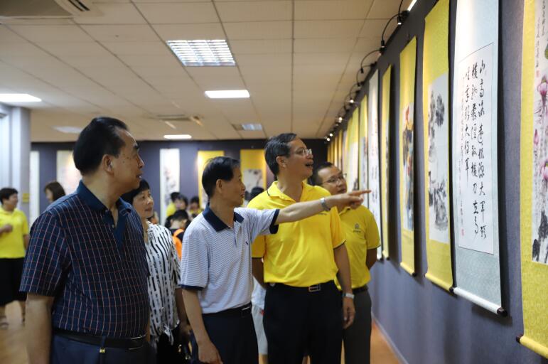 (香港商報網訊)記者程功明報道:“盛世迎華誕,翰墨書芳華。”為謳歌祖國發展新成就,弘揚優秀傳統文化,推動書畫藝術發展,7月25日一場主題為“慶祝中華人民共和國成立70周年”大型書畫作品展在東莞樟木頭觀音山景區隆重舉行。本次展覽以書畫聯展向祖國獻禮的藝術形式呈現,吸引了廣大游客市民的參觀。