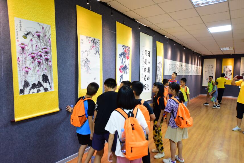 當天的書畫展的展館內人頭攢動,吸引了不少來觀音山旅游的游客及書畫愛好者前往觀展,也吸引了圣緣壇教育夏令營的師生們前來參觀,孩子們現場熱情倍增。參觀者在書畫作品前細細品味書畫家們的“翰墨丹青”的家國情懷。